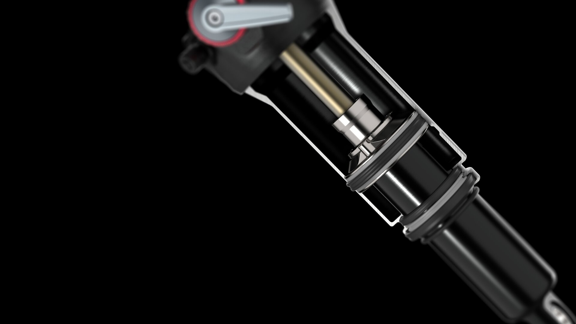 Das Ziel war es, einen leistungsstarken und leichten Dämpfer zu entwickeln, der eine geringe Losbrechkraft bietet, einen Mittelhubbereich, der es ermöglicht, auf flachen Strecken über Unebenheiten zu schweben und einen progressiven Endhub bietet, der raue Bodenwellen vermeidet. Dies wurde durch die Position des Bypasses und das Volumen der Luftkammern erreicht.